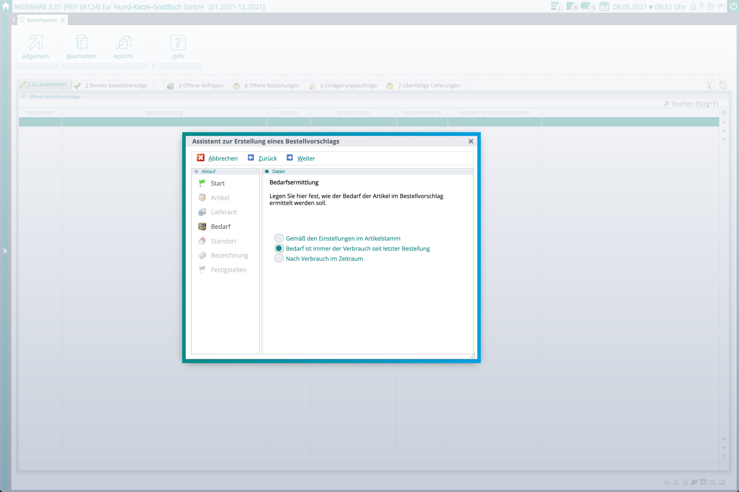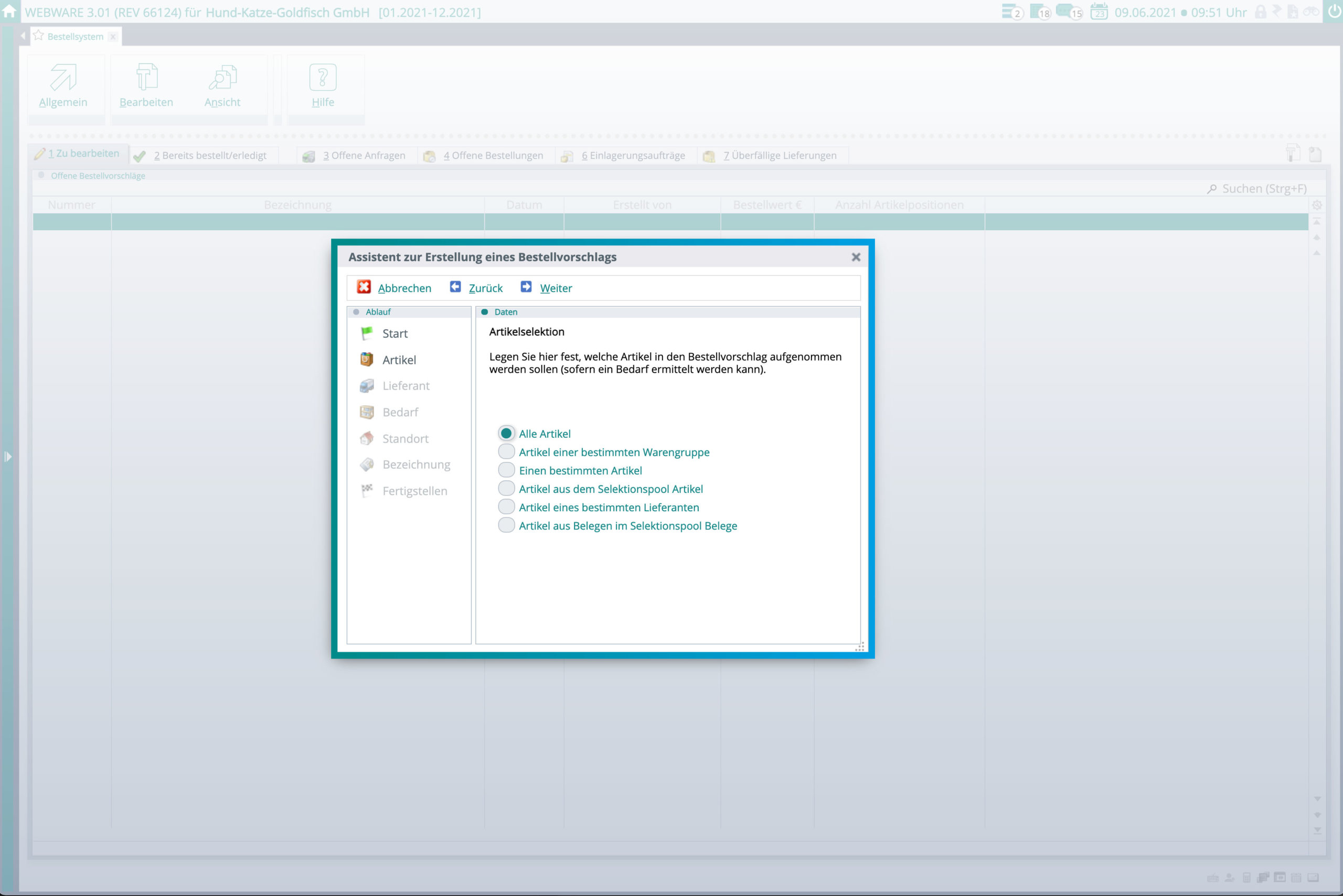 - Auswertung der Verkaufs-/Bewegungszahlen für den Bestellvorschlag