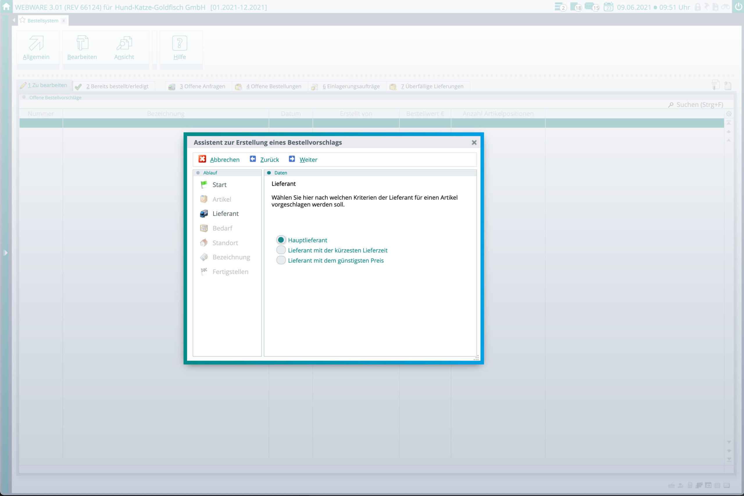 - Einbeziehung von Preisen und Lieferzeiten in den Bestellvorschlag