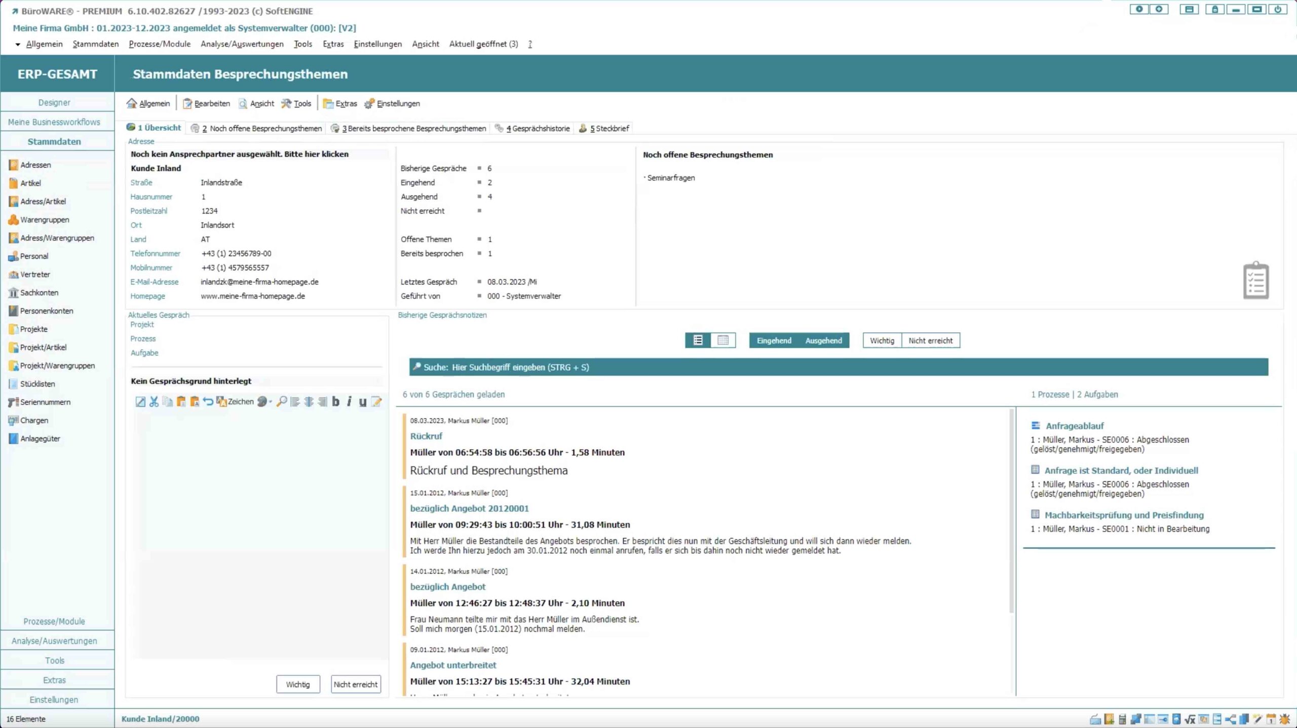 Die Tools der SoftENGINE ERP-SUITE ermöglichen Unternehmen, fundierte Entscheidungen zu treffen, Trends zu erkennen und ihre Geschäftsstrategien entsprechend anzupassen. Nutzen Sie die SoftENGINE ERP-SUITE im Bereich CRM für Ihren langfristigen Geschäftserfolg