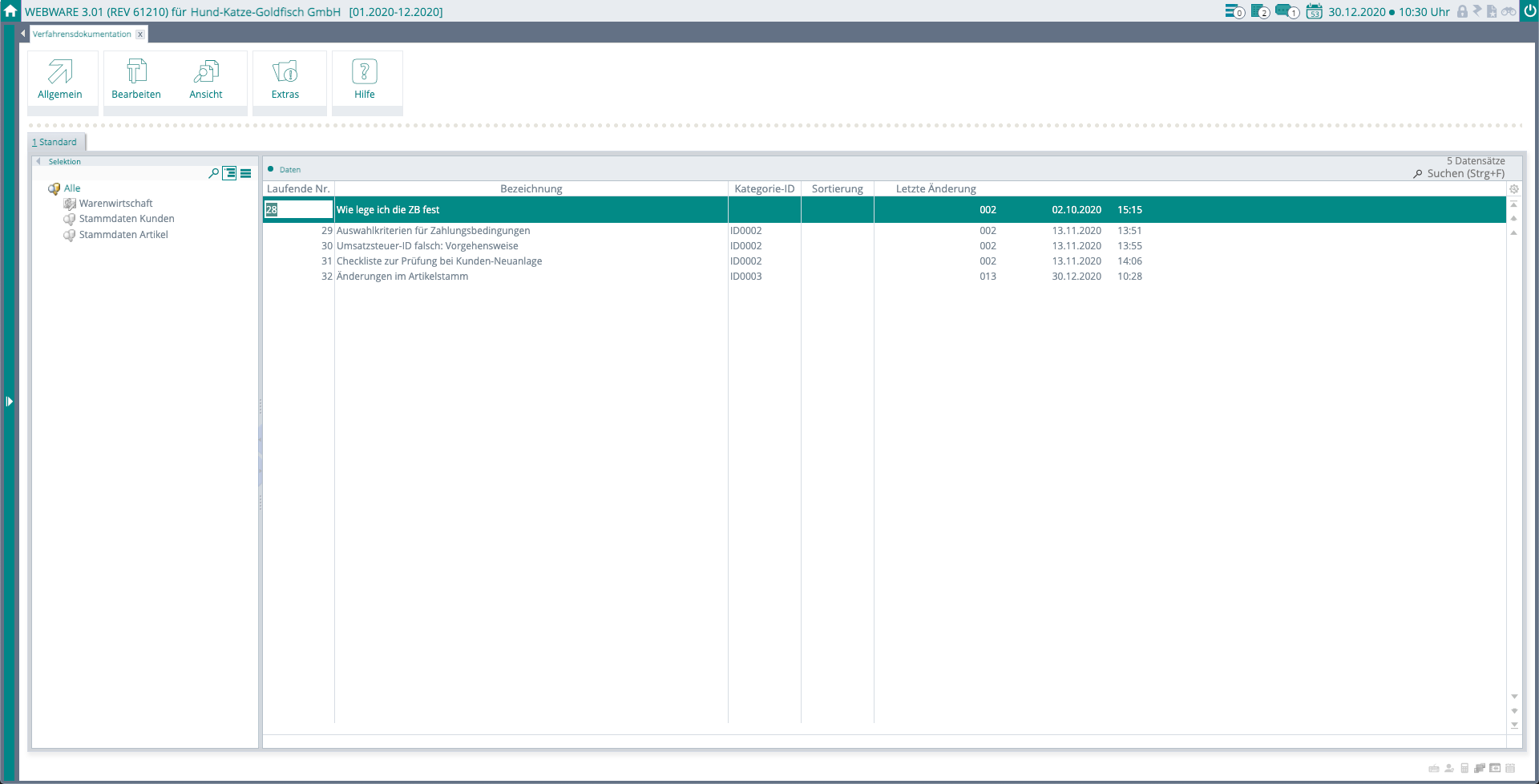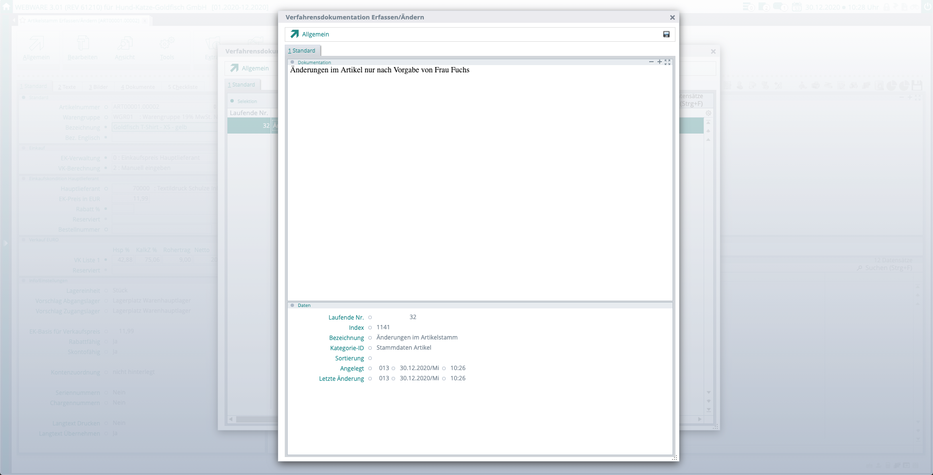 Alle Vorgänge, Programmänderungen & -anpassungen lassen sich so laufenden Betrieb protokollieren, dass bei regelmäßiger Pflege quasi nebenbei eine komplette Verfahrensdokumentation aufgebaut wird!