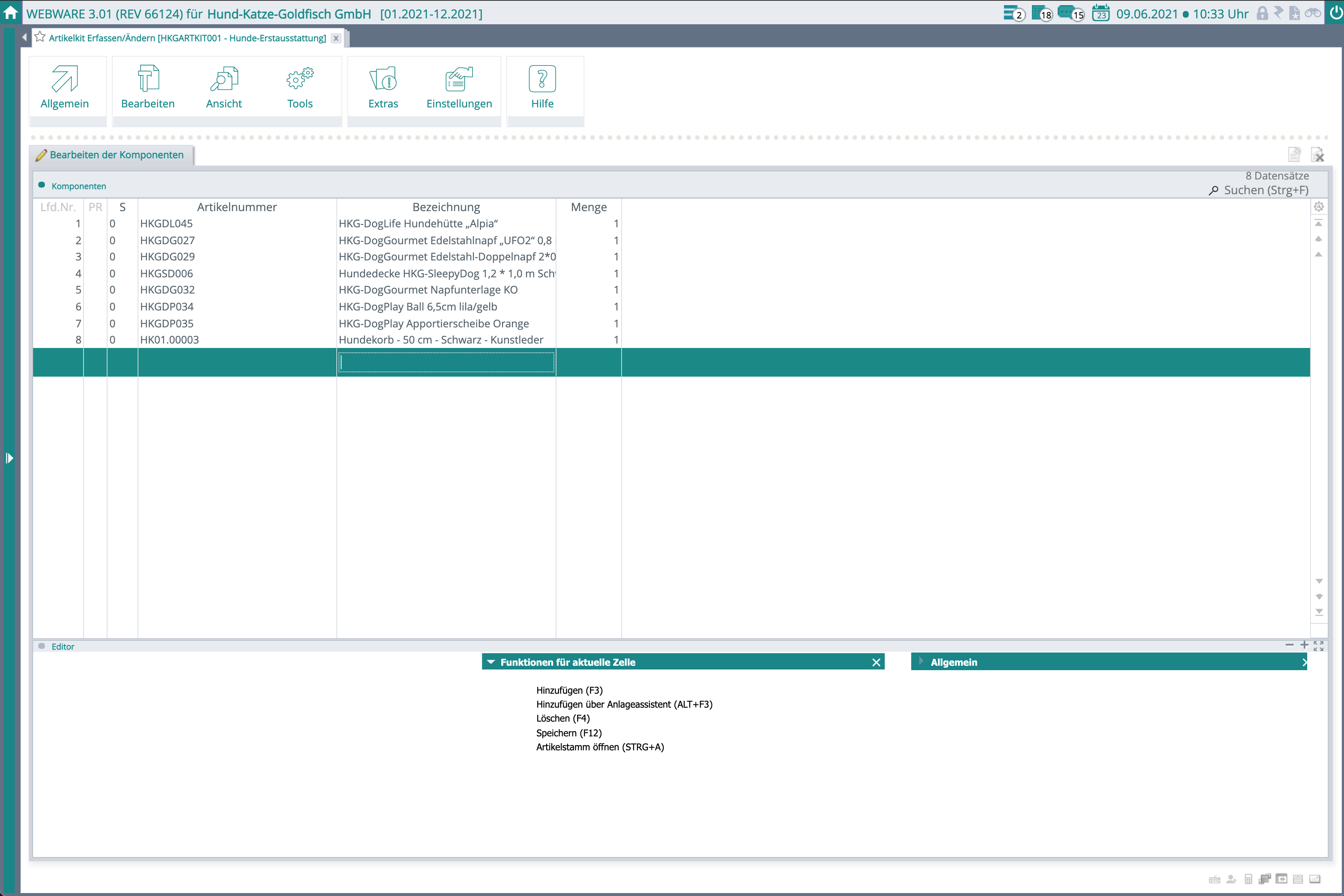 - Effiziente Verarbeitung: Das Kit wird in einem Schritt in Belege geladen, wobei die enthaltenen Artikel einzeln aufgelistet werden.