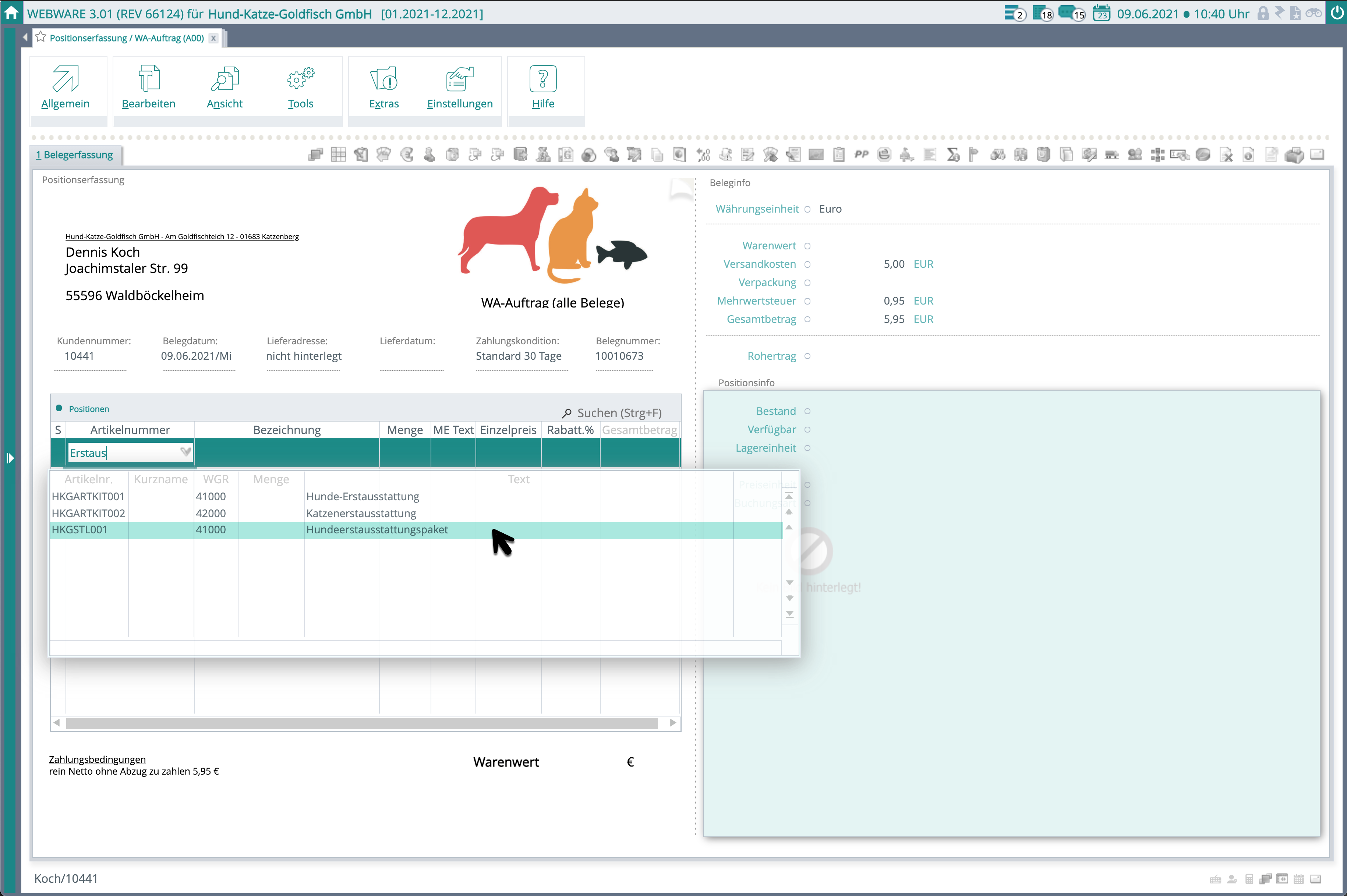 Sie wollen mit einem Klick mehrere Artikel in einen Beleg laden und berechnen?